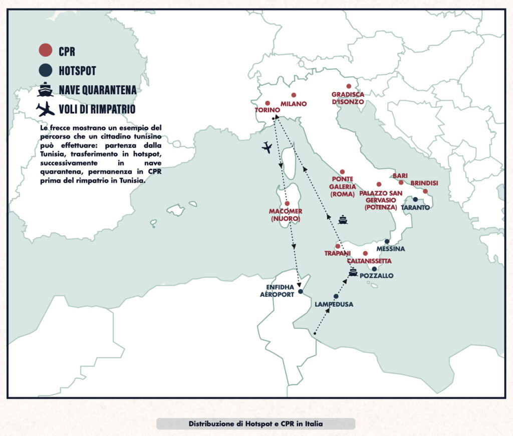 Dall’intercettazione in mare da parte della guardia costiera italiana al rimpatrio in Tunisia passando per la detenzione, i migranti tunisini attraversano un drammatico percorso a ostacoli.