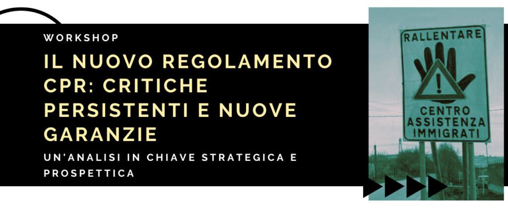 Il workshop organizzato da ASGI, Spazi Circolari e dall’Associazione Clinica Legale per i Diritti Umani mira ad approfondire le novità in tema di modalità di trattenimento nei CPR introdotte dalla Direttiva del Ministero dell’Interno del 19 maggio 2022, e nei luoghi idonei, delle persone straniere prive di un regolare permesso di soggiorno o richiedenti asilo, per ipotizzare strategie difensive.