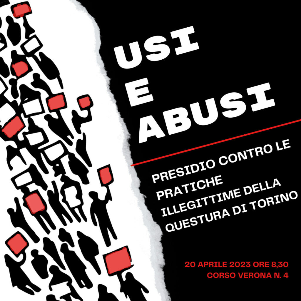 20 aprile 2023 – Presidio davanti alla Questura di Torino contro le prassi illegittime verso gli stranieri