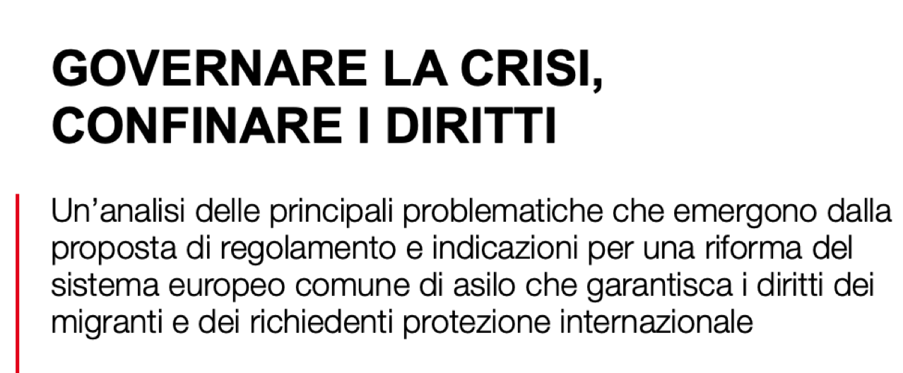 "Governare la crisi, confinare i diritti" è il titolo dell'analisi critica inviata alla Commissione UE: principali problematiche e le nostre indicazioni per un sistema europeo comune di asilo che garantisca i diritti dei migranti e dei richiedenti protezione internazionale.